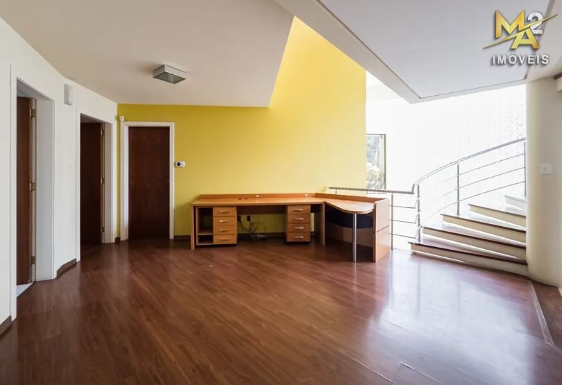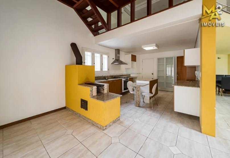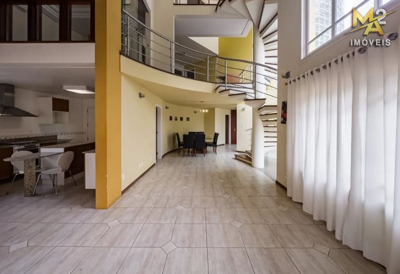 Uma ampla cozinha com móveis planejados agrega ainda mais requinte ao imóvel. Pisos em Porcelanato e Flutuante, assim como a linda escadaria revestida em madeira nobre, tornam este imóvel incomparável.