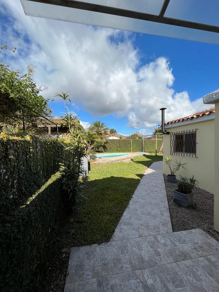 - A casa possui frente norte, recuada, protegida por muros e grades, com jardim e alpendre com cobertura em policarbonato. Tudo isto em uma área total de 580m² com terreno medindo 14,50 x 40,00m. Próxima à praia e ao Shopping Mar de Dentro.