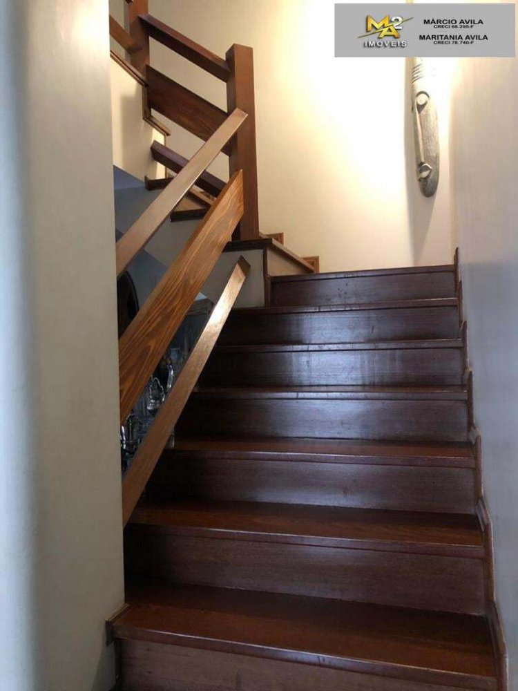 - Escada com corrimão em madeira nobre;