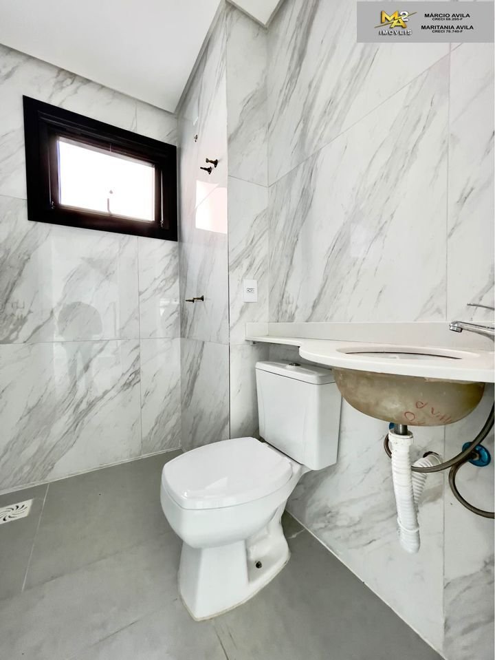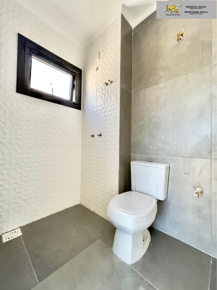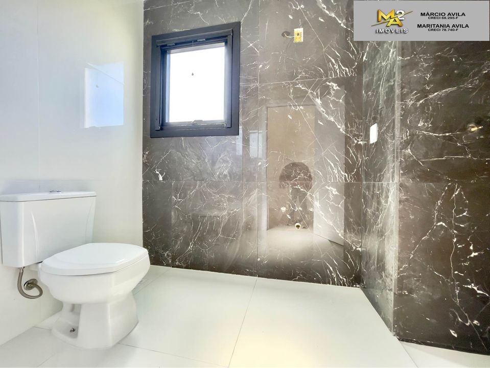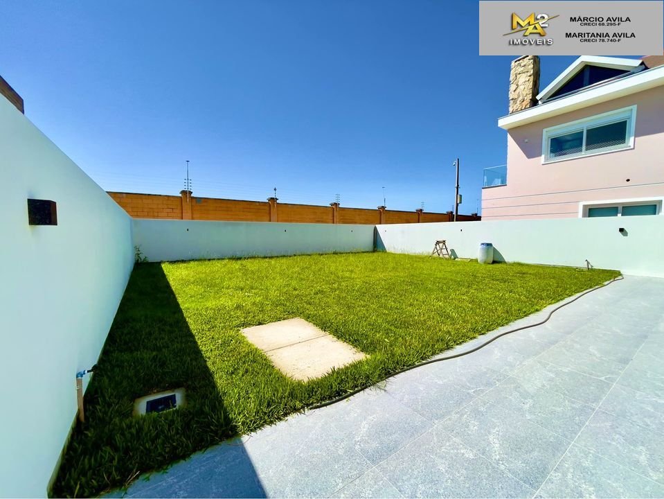 As aberturas são em PVC preto, pisos em porcelanato e flutuante, temos revestimento em pedra na escada, uma garagem coberta para dois veículos e um pátio amplo para ser personalizado do seu jeito!